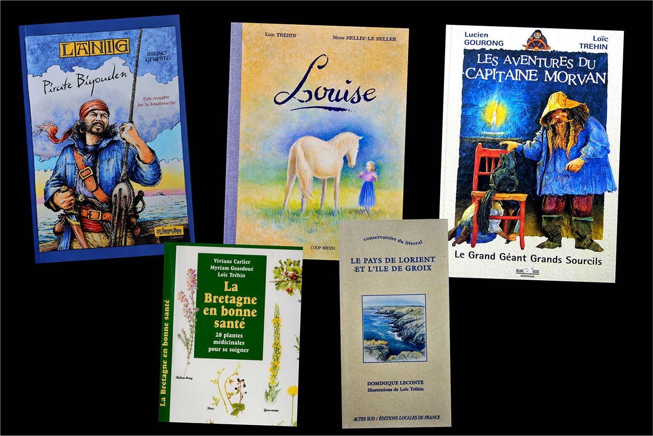 Ses talents d’illustrateurs sont également plébiscités par des écrivains, des conteurs et des éditeurs ( Editions du Scorff, Actes Sud, Coop Breizh, Locus Solus, Yoran Embanner) pour des livres jeunesse, contes et légendes (Tristan Pichard, Lucien Gourong, Pierre Livory,  Jeff Falmor, Mone Hellec-Le Beller…).