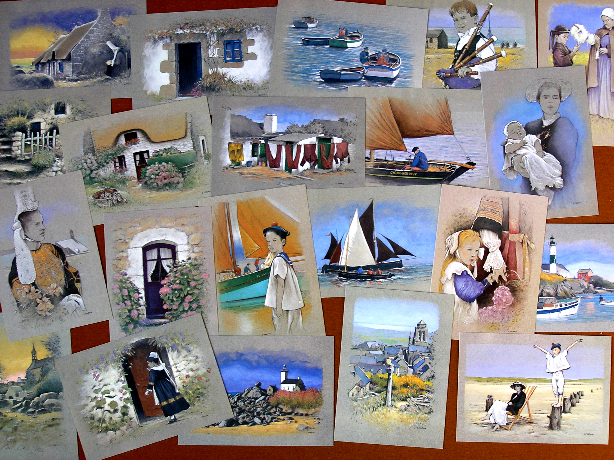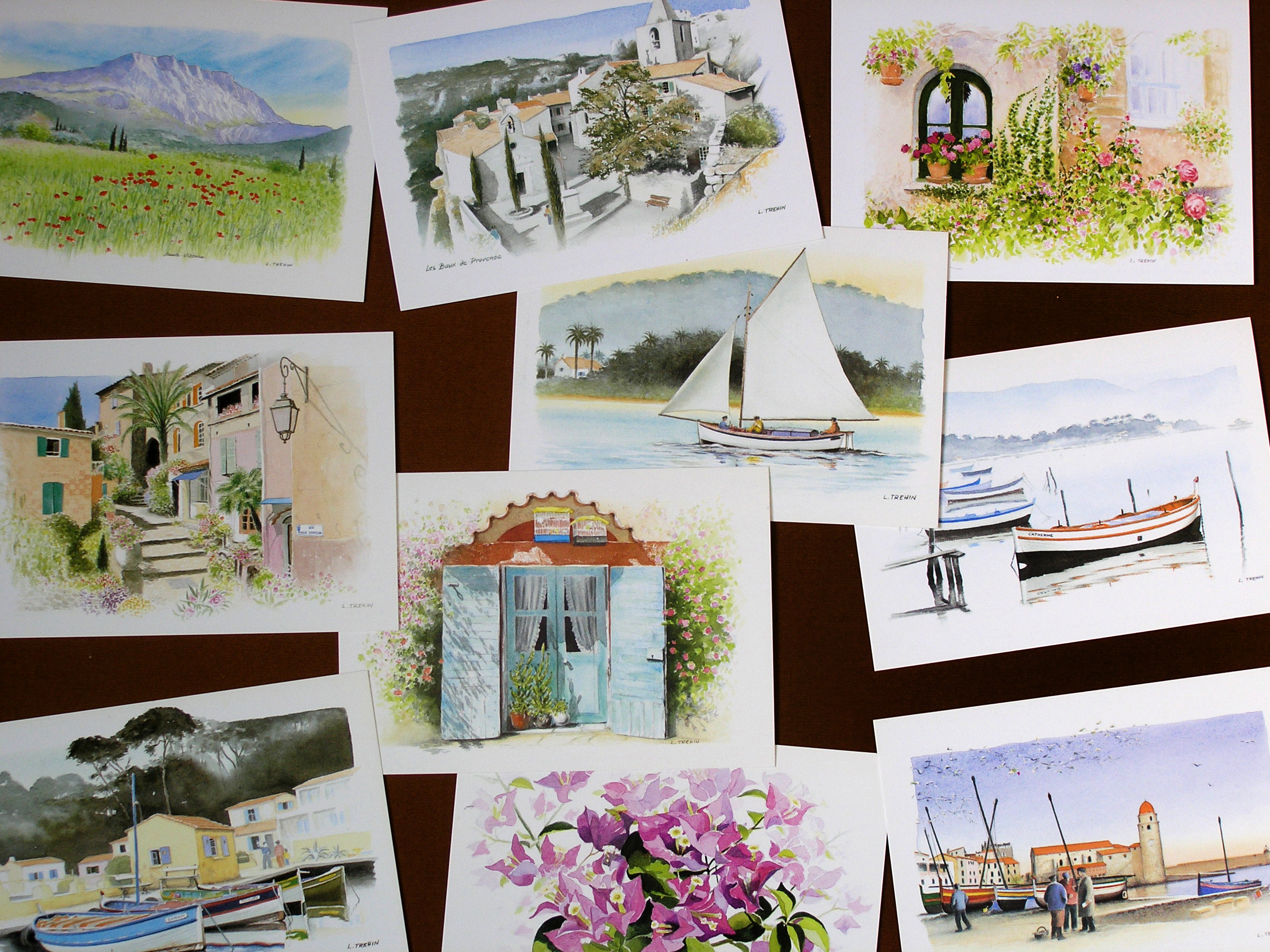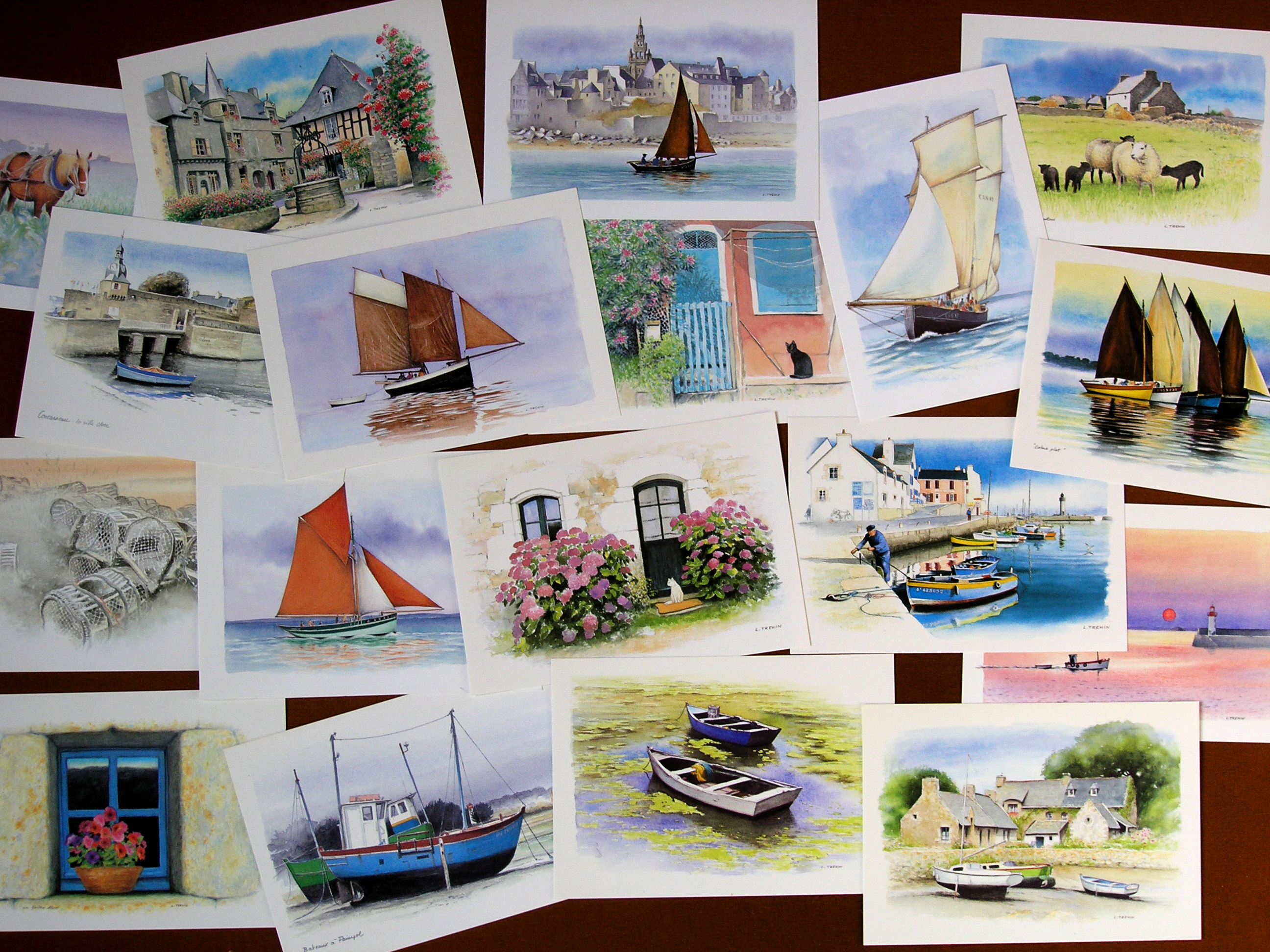 Loïc a illustré et édité un grand nombre de cartes postales - Paysages à l’aquarelle de Bretagne, Provence/Côte d’Azur, Normandie, Sud-Ouest et Paris (environ 350 modèles entre 1983 et 1995)