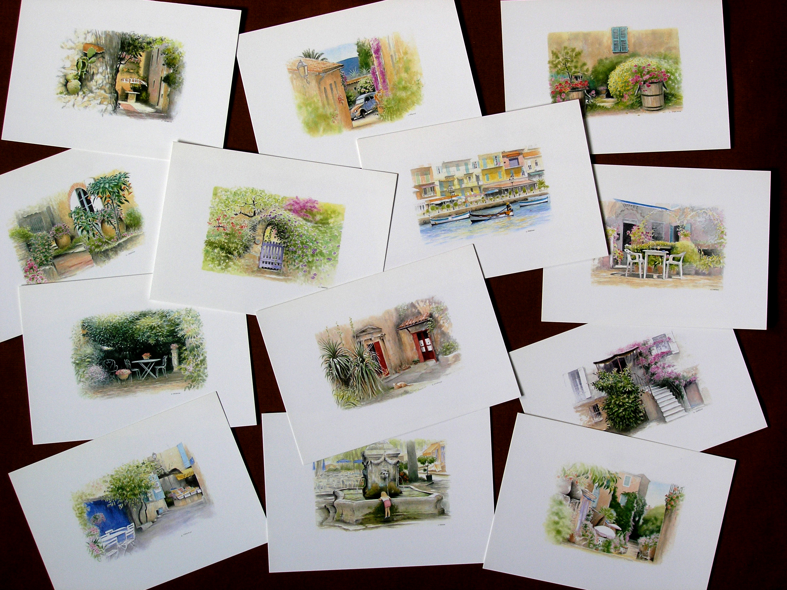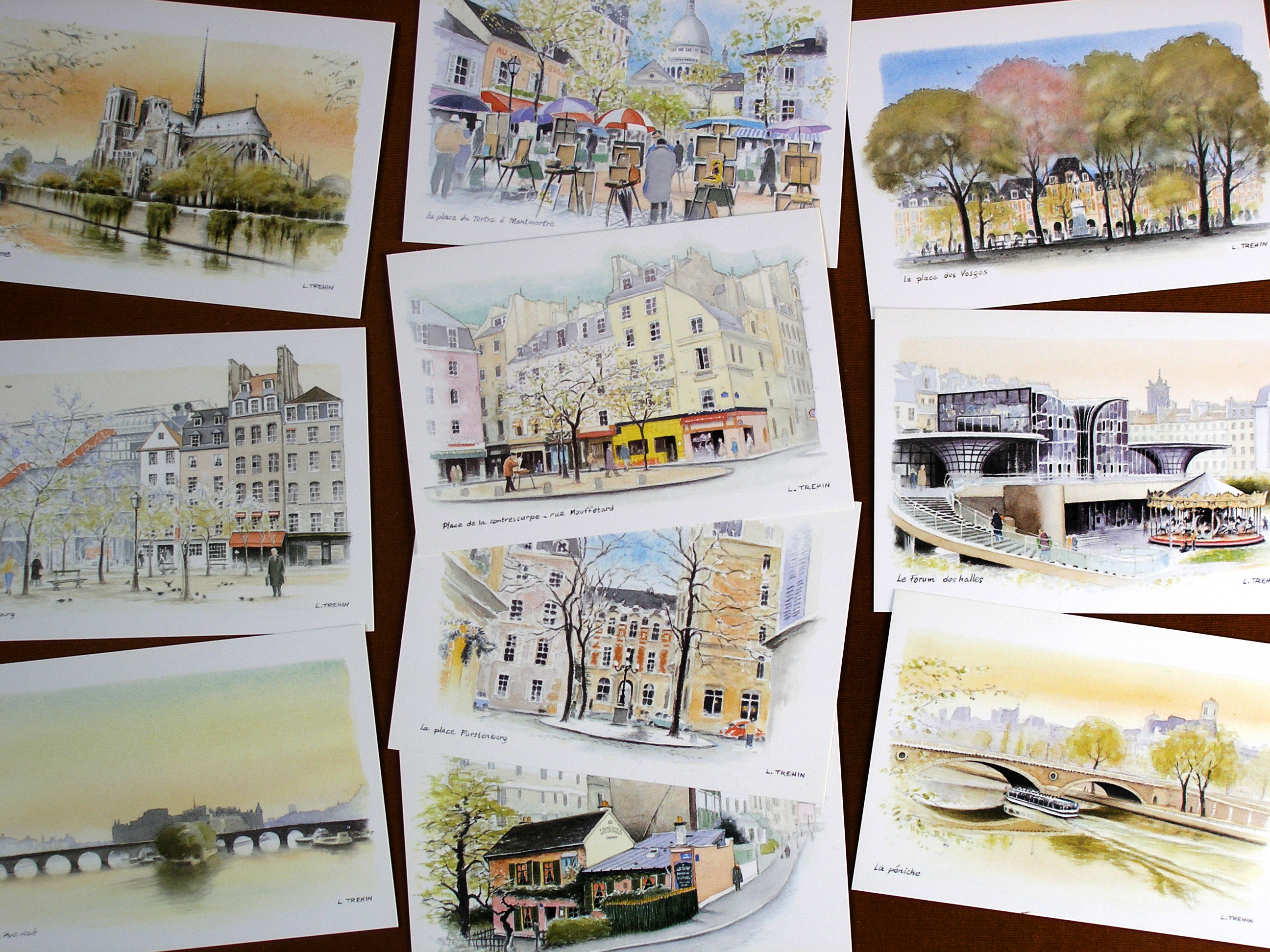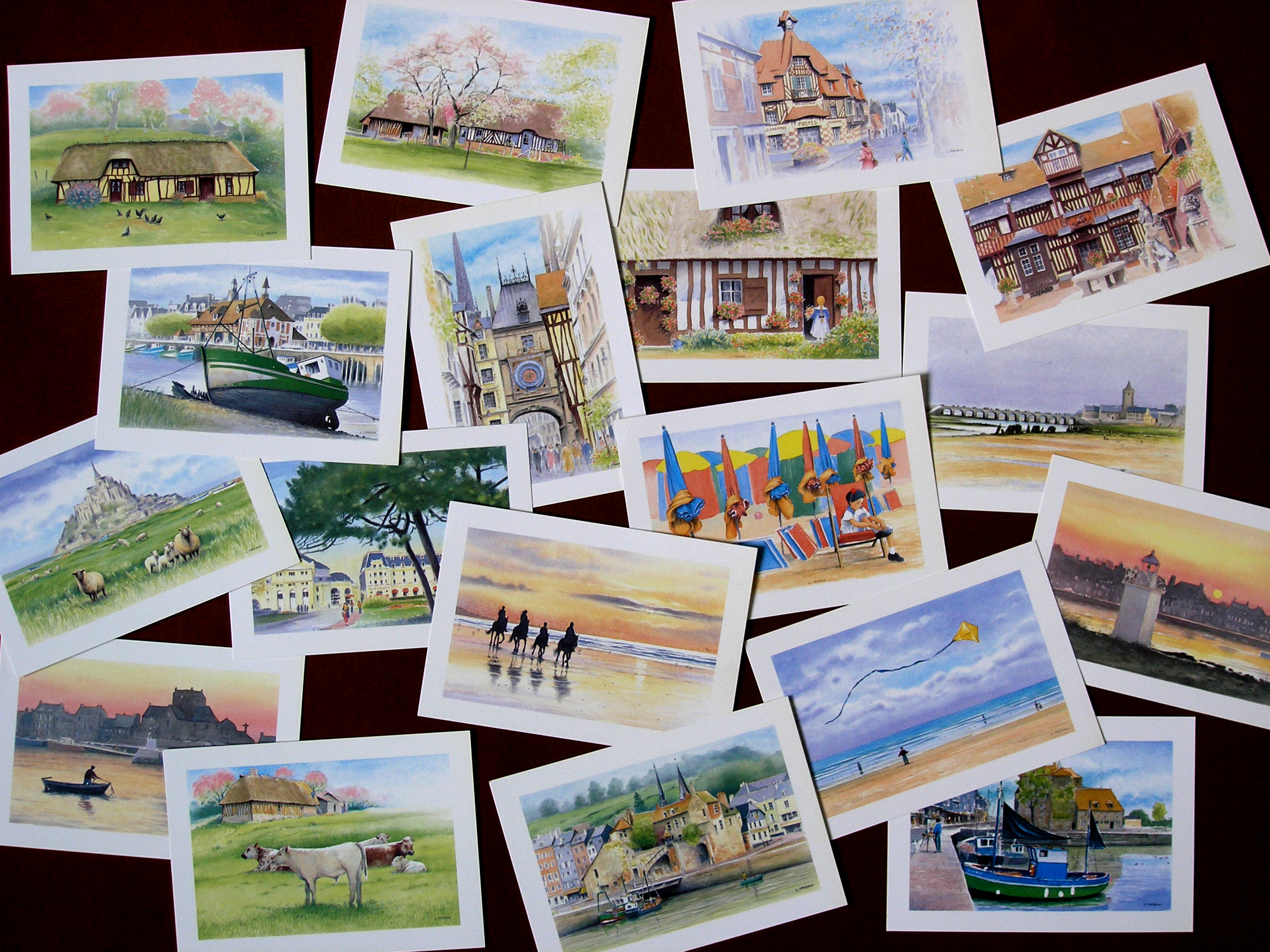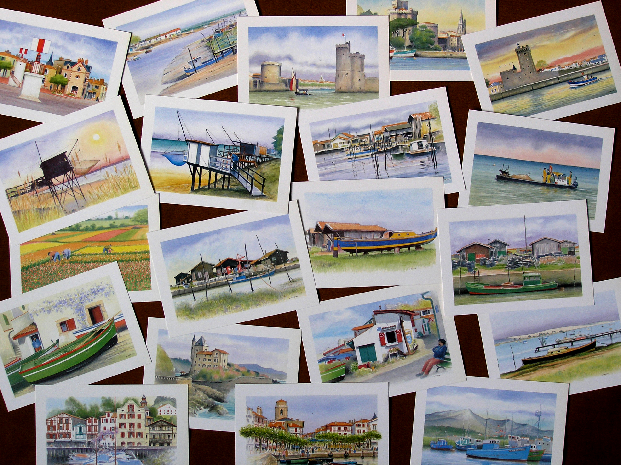 Loïc a illustré et édité un grand nombre de cartes postales - Paysages à l’aquarelle de Bretagne, Provence/Côte d’Azur, Normandie, Sud-Ouest et Paris (environ 350 modèles entre 1983 et 1995)